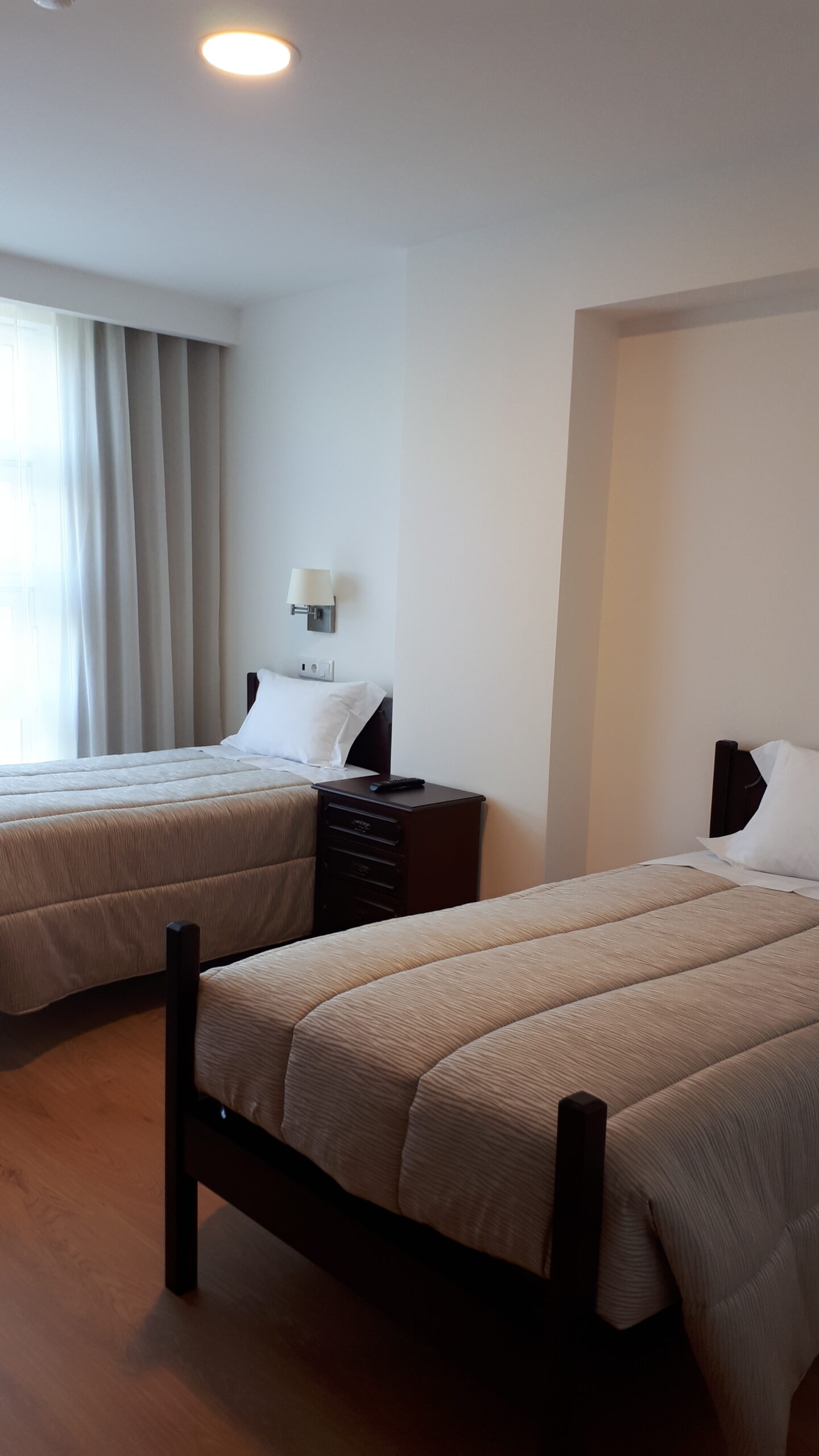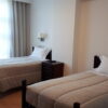Quarto partilhado com três camas de solteiro.